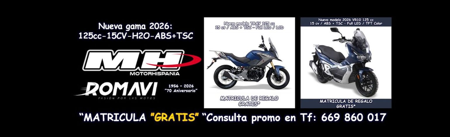 MH TRAY 125: Una preciosa trail de 125 cc con un moderno motor refrigeración líquida, potencia 15 CV y Par motor 11,2 Nm a 8.000 rpm. Agresivo frontal con iluminación Full LED. Llantas de radios de 17″, con neumáticos mixtos. Inyección Bosch. Panel LCD, frenos ABS Bosch de doble canal. Estética Premium. 3 AÑOS DE GARANTÍA. *Tasas de tráfico/matrícula, embalaje/portes, pre entrega y montaje incluidas. (Oferta válida para vehículos en stock y matriculados antes del 31/05/2026).