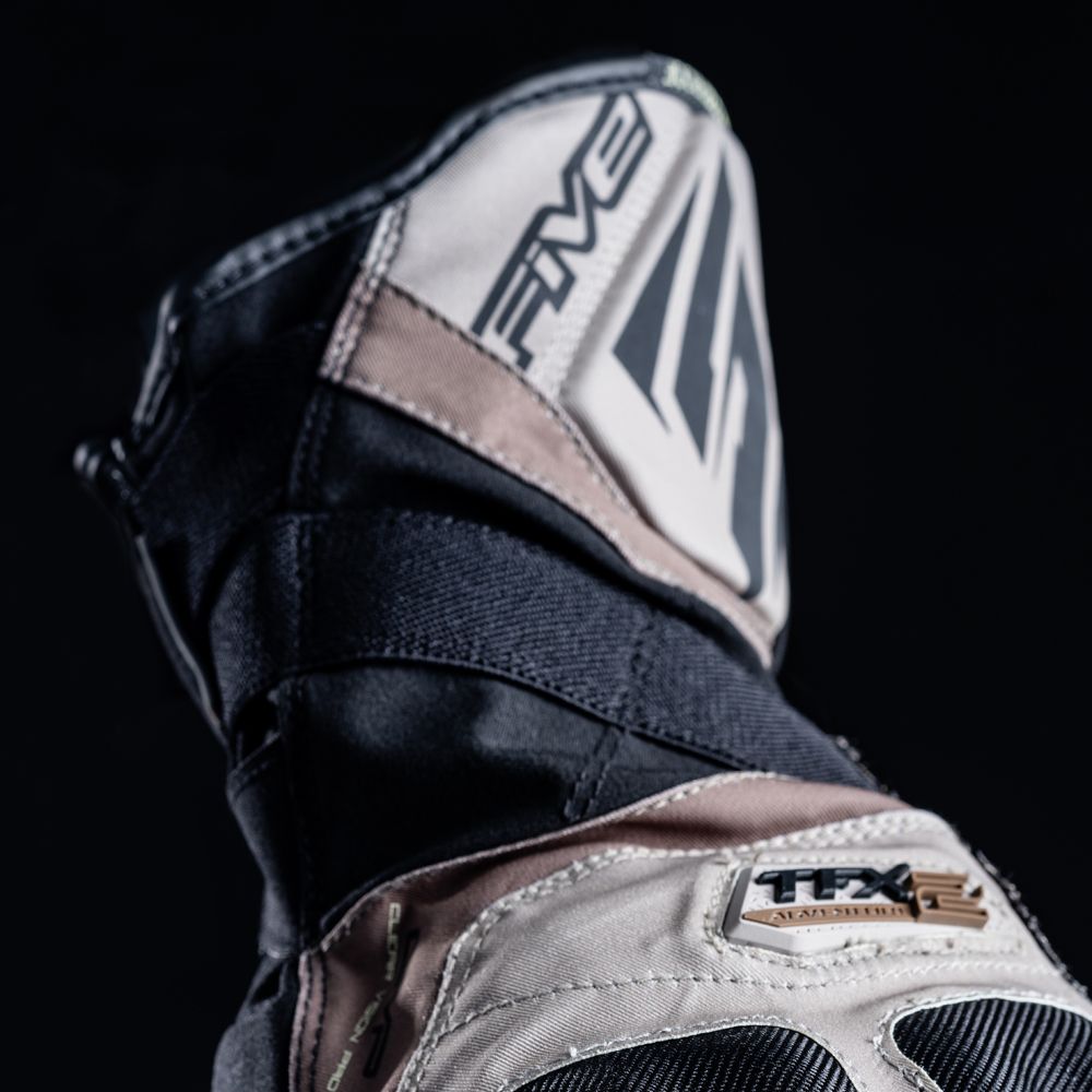 El guante de moto Five TFX2 WP está hecho para aventureros que no dejan nada al azar. Y en particular, para quienes exigen un guante cómodo que les permita conducir sin preocupaciones en cualquier tipo de camino o enfrentarse cualquier tipo de situación de la madre naturaleza. Porque cuando te embarcas en la aventura, puedes comenzar bajo un sol brillante y terminar el día bajo una lluvia torrencial. Con su construcción de tejido laminado repelente al agua y su membrana impermeable y transpirable, 5 DryTech, ofrece una sequedad incomparable al mismo tiempo que permite una evaporación de la transpiración, algo que ocurre a menudo cuando se practica una conducción exigente por pistas sin asfaltar.
