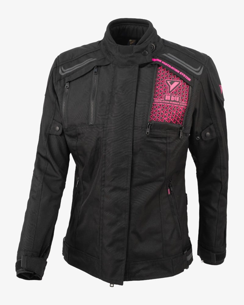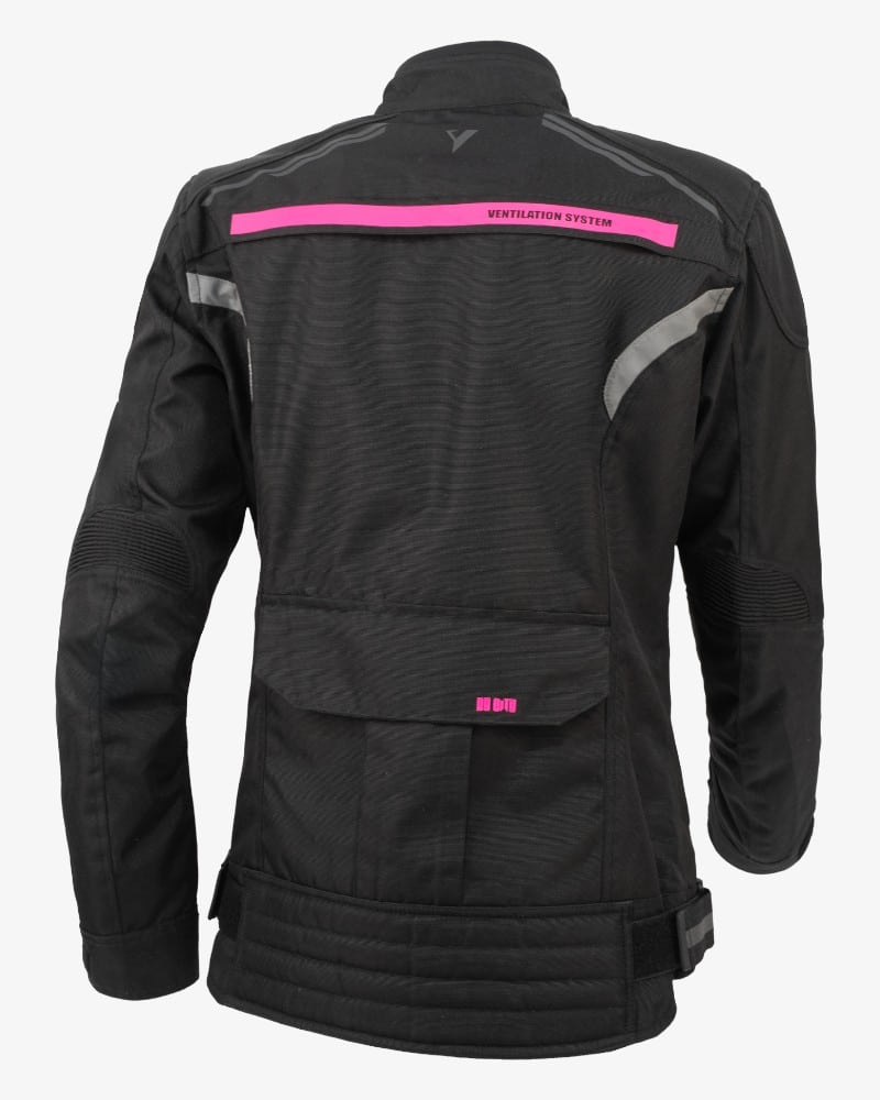 By City Chaqueta mujer moto África corta: Está fabricada en Cordura 600D, con un corte femenino que te queda perfecta y la hace muy cómoda de llevar. Elementos reflectantes en frontal y espalda, ventilación engomada en frontal con cremalleras impermeables YKK; incluye ventilación en espalda con cremallera impermeable YKK; 3 bolsillos exteriores y 2 interiores. Ajustable en cintura, brazo, cuello y muñeca.