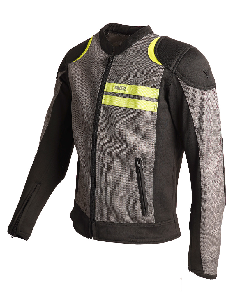 By city chaqueta moto verano Breeze gris: Chaqueta de moto para hombre fabricada en malla y punto elástico resistente a la abrasión, ofreciendo comodidad y flexibilidad excepcionales. Incluye dos bolsillos exteriores y enganches en el pecho. Ajustable en muñeca para un ajuste perfecto. Totalmente ventilada y ligera, ideal para condiciones climáticas cálidas. Detalles reflectantes en la parte frontal y trasera para una mayor visibilidad. Bolsillos interiores diseñados para protecciones (protección de espalda no incluida).