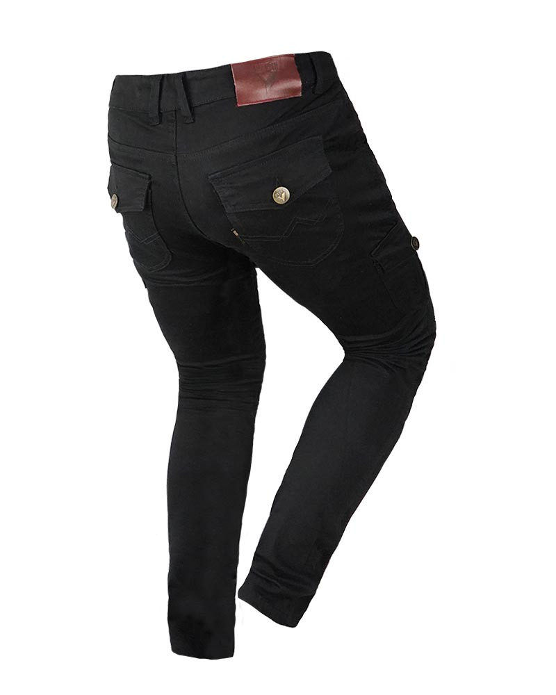 By City pantalón algodón moto Mixed III Slim negro. Pantalón fabricado en resistente tejido de algodón con tecnología de hilo de núcleo para mayor durabilidad. Diseñado con una única capa de tejido sin forro, cuenta con siete bolsillos exteriores funcionales y streching en la zona del muslo para un ajuste cómodo y flexible. Se asegura con cremallera YKK® y dispone de bolsillos interiores específicamente diseñados para la inserción de protecciones en cadera y rodilla, garantizando seguridad y confort durante la actividad.