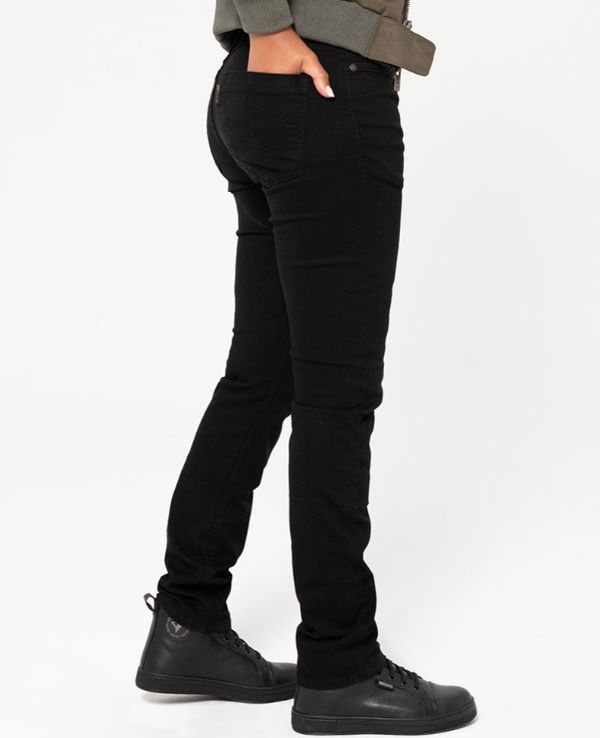 By City pantalón vaquero moto mujer Route II negro: Pantalón fabricado en tejido denim de algodón resistente a la abrasión, con tecnología de hilo recubierto para mayor durabilidad. Diseñado con una única capa de tejido sin forro, cuenta con cinco bolsillos exteriores prácticos y cierre seguro con cremallera YKK. Además, dispone de bolsillos interiores específicamente diseñados para la inserción de protecciones en la cadera y rodilla, proporcionando seguridad y confort durante la conducción.