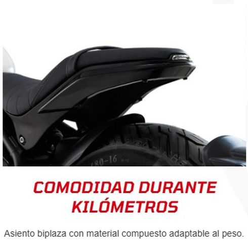 - Ruedas: delantera 130/90-16 y trasera 150/80-16