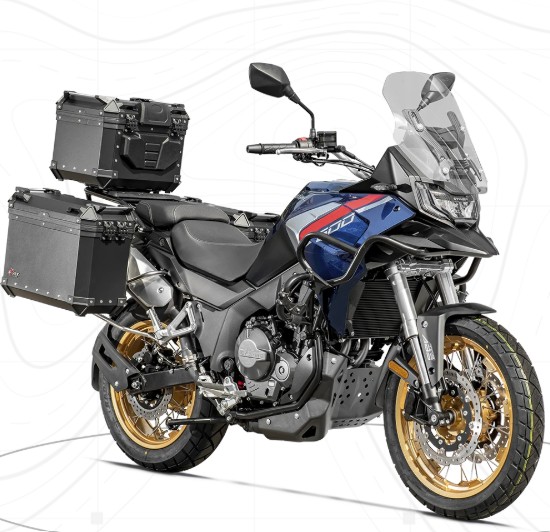 - TOURING: 749 €/Top case trasero 40L + 2 maletas laterales de 20L (todas metálicas) + Soporte + Herrajes.