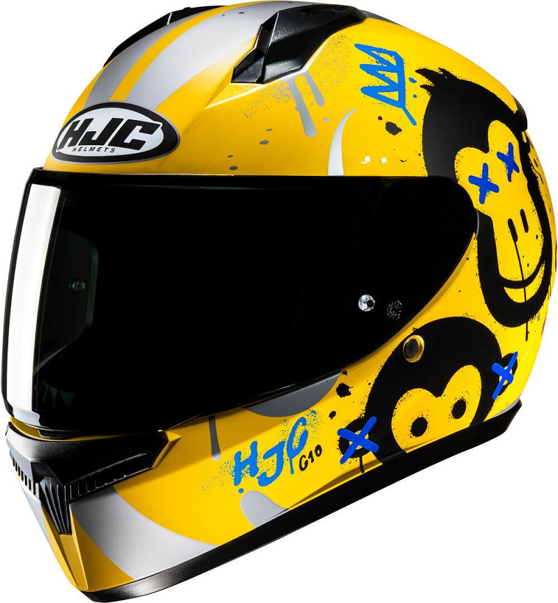 HJC casco moto integral infantil C10 Geti MC3SF amarillo: Ideal para todas las edades de peques. El C10 es muy seguro y ligero; confeccionado en policarbonato avanzado, dispone de una pantalla que ofrece una gran visibilidad y cuenta con un eficaz sistema de ventilación.