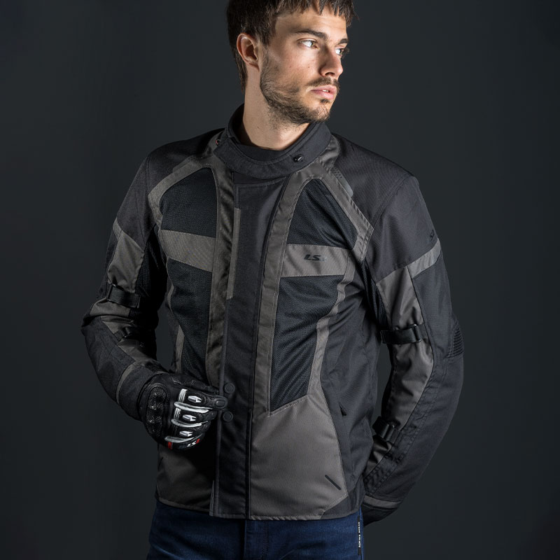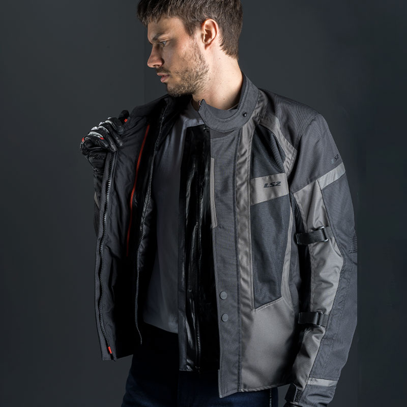 LS2 chaqueta invierno hombre Scout gris. Cómoda chaqueta touring con forros térmicos e impermeables desmontables, ideal para todas las estaciones del año. Paneles de ventilación en pecho, espalda y brazos. Brazos ajustables. Protecciones desmontables en hombros y codos.