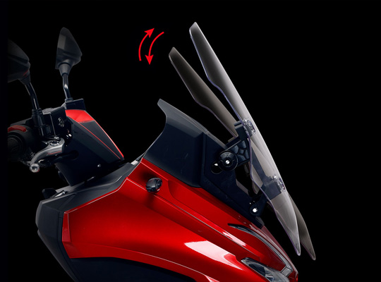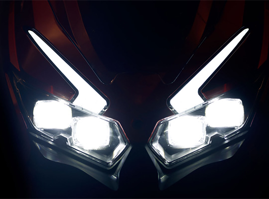Neumáticos mixtos, delantero de 14” y trasero de 13”, inyección Bosch, un gran panel LCD de 7”, iluminación full LED con frontal de cuatro lentes que como resultado permite distribuir la luz uniformemente y ampliar el campo de visión, ABS Bosch de doble canal y con una gran sofisticación de sus líneas y estética cuidada hasta el último detalle.