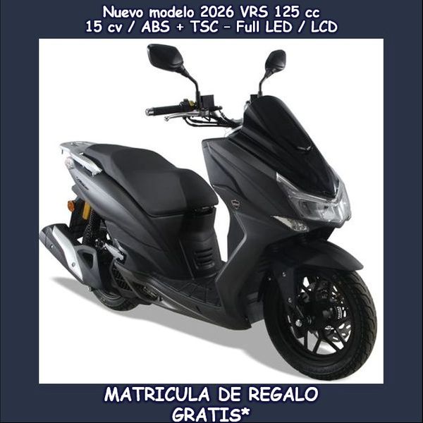 MH VRS 125: Un precioso scooter urbano y potente, con 15 CV y consumo reducido: 2,4l/100 kms. Un potente motor de 15 CV, con refrigeración líquida, impresionante frenada con doble disco de freno, pantalla LCD, iluminación Full LED, ABS Bosch de doble canal + TCS (Control de Tracción), toma USB, hueco bajo el asiento, fácil de manejar con un cómodo suelo plano. scooter. Equipamiento premium y alto rendimiento. 3 AÑOS DE GARANTÍA. *Tasas de tráfico/matrícula, embalaje/portes, pre entrega y montaje incluidas; oferta válida para vehículos en stock y matriculados antes del 30/03/2026.