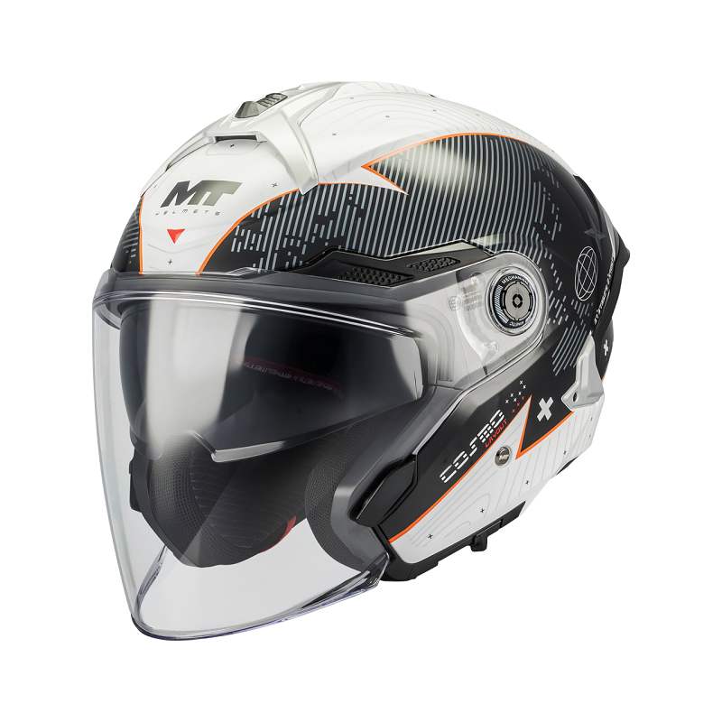 MT Helmets casco jet Cosmo SV. Ha sido diseñado como un casco de la mejor calidad y concebido para superar la ECE 22.06 y la ha superado con todos los elementos que puede equipar, incluido el nuevo intercomunicador UCS MT-Rider Sync. Cuenta con Sunvisor y sistema de cambio de pantalla rápido MT-QVSS. Cuenta con un deflector trasero desmontable (sin herramientas) y con una pantalla de alta protección.
