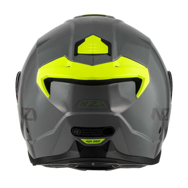 Carcasa o calota de termoplástico resistente a los impactos. Mecanismo de cierre de protección maxilar abatible de metal reforzado. Sistema de retención reforzado, arnés dotado de 4 correas para mantener el casco en su lugar sobre la cabeza del motociclista sea cual sea la dirección de donde provengan los impactos.