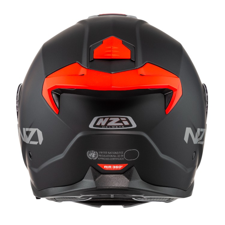 Carcasa o calota de termoplástico resistente a los impactos. Mecanismo de cierre de protección maxilar abatible de metal reforzado. Sistema de retención reforzado, arnés dotado de 4 correas para mantener el casco en su lugar sobre la cabeza del motociclista sea cual sea la dirección de donde provengan los impactos.