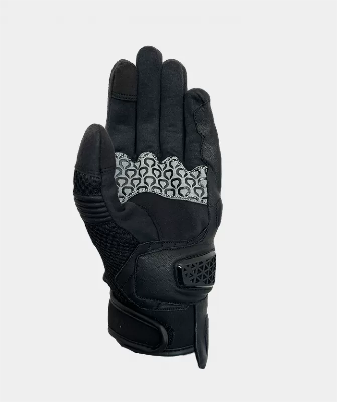 El guante Rock está fabricado en tejido ventilado Mesh, que facilita el flujo de aire hacia el cuerpo para mantener una ventilación óptima en nuestras manos. Las zonas de desgaste están reforzadas con piel, confiriéndole un extra de seguridad. La palma de la mano y la zona interior de los dedos está construida con tejido de Amara, ofreciendo un buen tacto de los controles. Su protector de nudillos TPU, su protector lateral y su deslizadera en palma proporciona una excelente protección contra la abrasión y los impactos. Los dedos disponen de protectores de falange perforados, facilitando el flujo de aire hacia el propio dedo, pero garantizado la protección.
