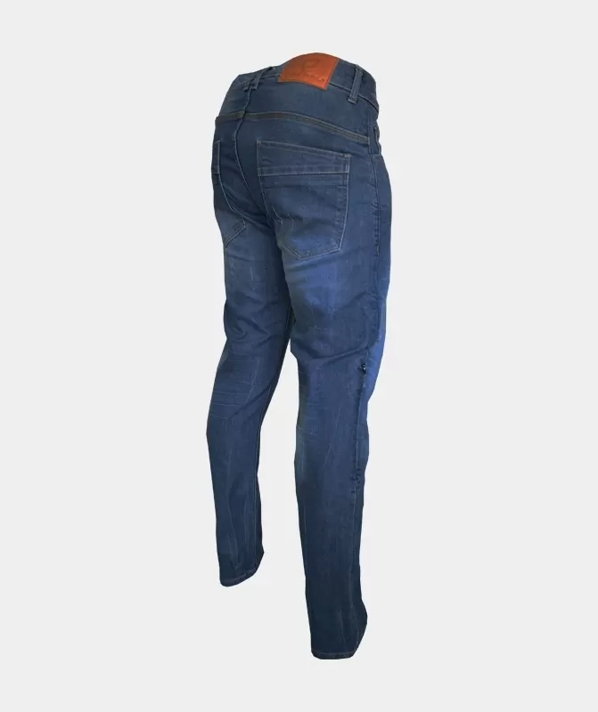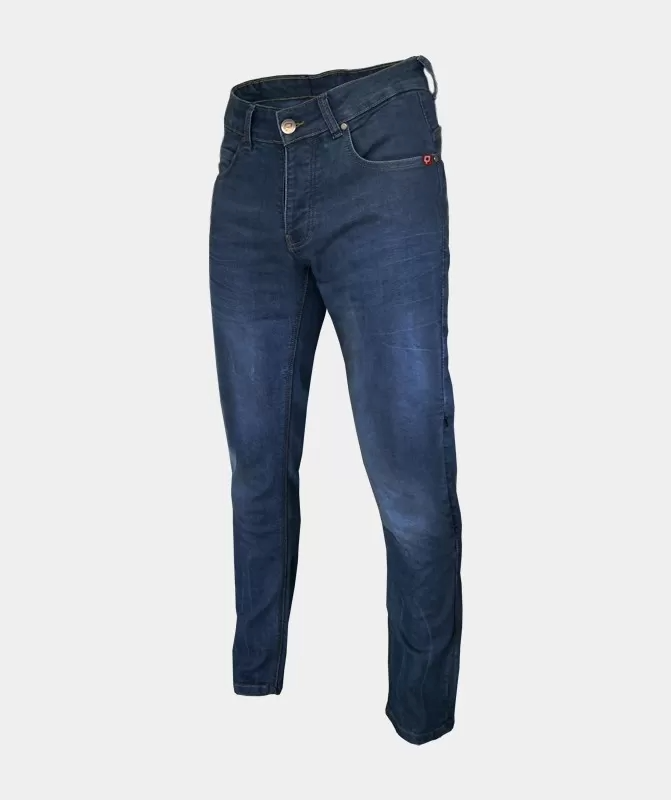 Quartermile pantalón vaquero London azul oscuro. El pantalón London está confeccionado con uno de los tejidos más avanzados del mercado. Este tejido se compone de fibras de algodón (jeans) trenzadas con fibras sintéticas con gran resistencia a la abrasión, dando como resultado un gran confort y seguridad.