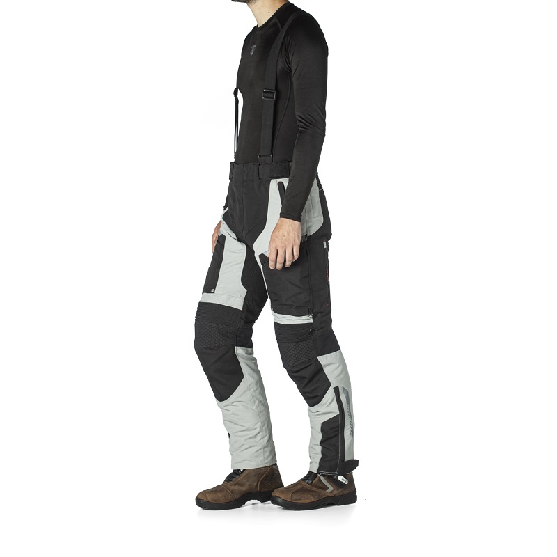 Rainers pantalón moto Trivor. Pantalón 4 estaciones Adventure color gris. Este es un pantalón para utilizar durante todo el año, además en nuestro catalogo encontrarás a juego la chaqueta modelo Trivor, por si te apetece ir conjuntado. Este modelo es muy cómodo y resistente, fabricado con tejido extrafuerte en la zona de las rodillas además de los fuelles flexores para tu comodidad, como ya hemos comentado, es un pantalón cuatro estaciones, ya que tanto el forro térmico como la membrana impermeable son desmontables e incluye tomas de aire laterales. Este modelo lo hemos querido complementar con unos tirantes para que vayas aún más cómodo y si no te apetece llevarlos son extraíbles, puedes quitarlos cuando quieras. El modelo Trivor es un pantalón súper completo, con bolsillos, paneles frontales de ventilación desmontables, etc., es uno de nuestros pantalones más recomendado.