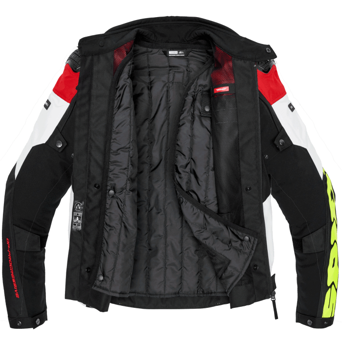 Spidi chaqueta invierno Progressive Tex roja. Es la chaqueta de moto de corte deportivo que se puede utilizar en diferentes estaciones, ideal para recorridos de media distancia. Certificada EN 17092-4:2020 en Clase AA, incluye un forro térmico desmontable de 100 gr/m² y la opción de montar cualquier accesorio Step-In Wear.