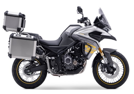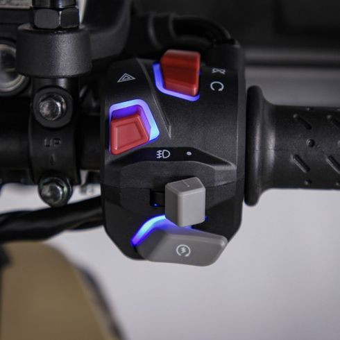 • Defensas, protectores de manos, salida elevada escape, caballete central y lateral, alumbrado Full LED, extra faros antiniebla, pantalla LCD color de 7”, monitorización de la presión de los neumáticos, control de tracción (TSC),..