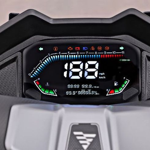 - Destaca una cámara frontal, Completo cuadro LCD a todo color, Toma USB, Sistema Keyless de arranque sin llave. Llantas de 13 y 14 pulgadas, delante y detrás, Peso 135 kg.